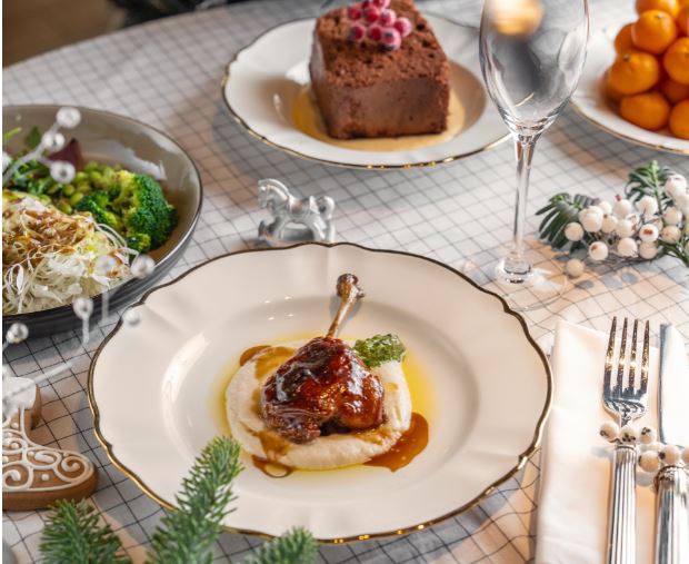 Меню, созданное бренд-шефом Русланом Поляковым, включит фирменные закуски, классические новогодние салаты, горячие блюда и коллекцию десертов.